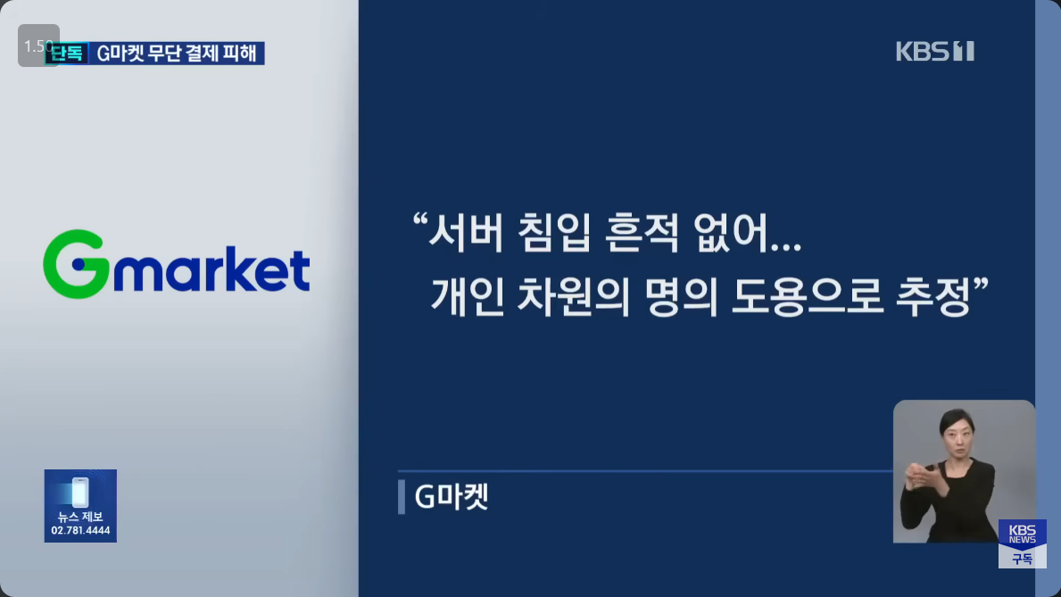 G마켓 측은 이번 사고가 시스템 해킹이 아니라, 외부에서 탈취한 계정 아이디와 비밀번호, 그리고 결제 수단인 스마일페이 비밀번호를 이용한 ‘전형적인 도용’이라며 설명했습니다. 동일 계정을 여러 사이트에서 사용하는 관행이 해킹범들에게 유리하게 작용한 것으로 추정된다고 하네요. 뉴시스