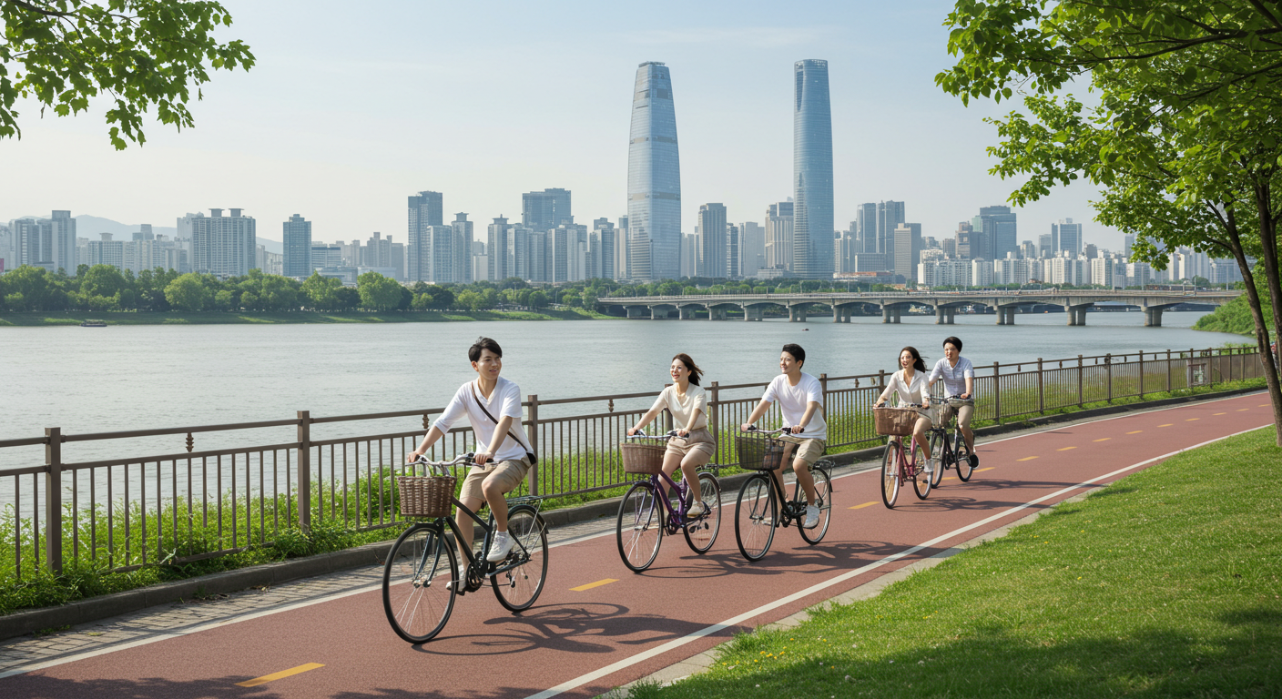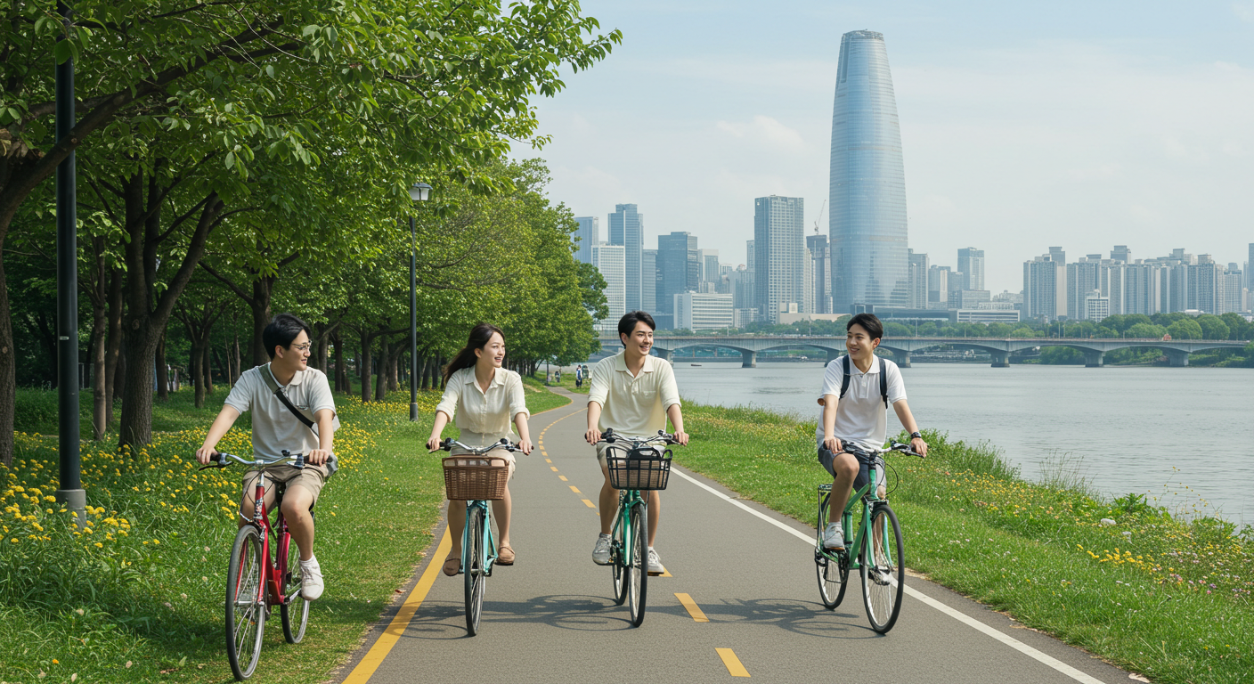 - 이미지 대체 텍스트 예시: 한강공원에서 자전거를 타는 가족들 (도심 속 피서지, 한강)