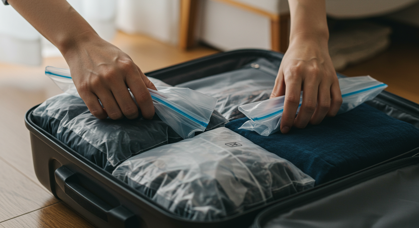 - 파우치/지퍼백으로 분류: 속옷, 양말, 세면도구, 전자기기 등 종류별로 파우치나 지퍼백에 담아 정리하면 찾기 쉽고 위생적입니다.
