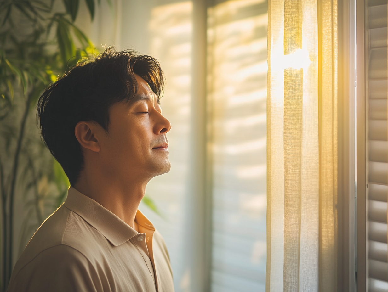 햇살을 받으며 깊이 숨을 쉬어보세요.
