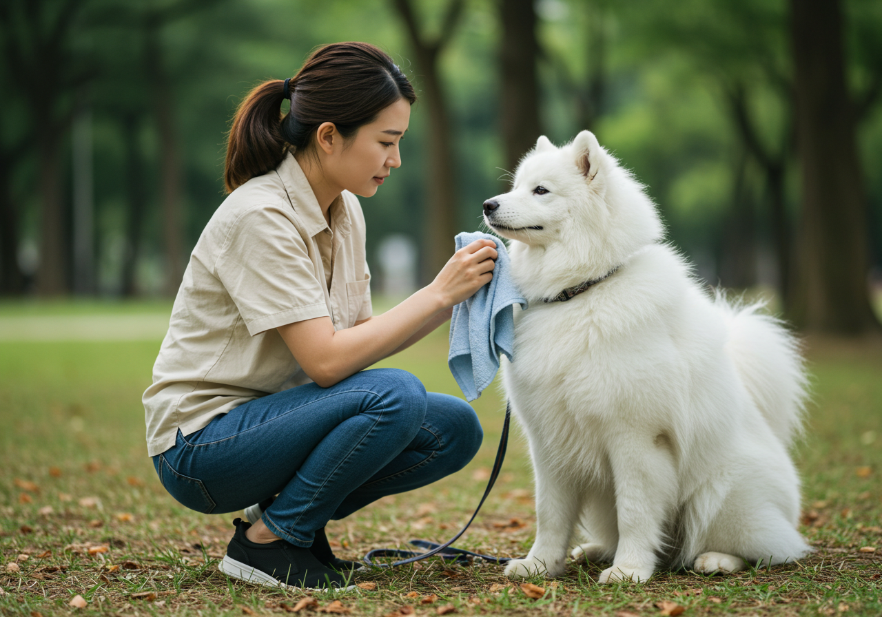 - 휴식과 수분 공급: 야외 활동 중에는 충분한 휴식을 취하고, 항상 신선한 물을 충분히 제공해야 합니다. 휴대용 물그릇을 챙겨 다니며 수시로 물을 마시게 해 주세요.