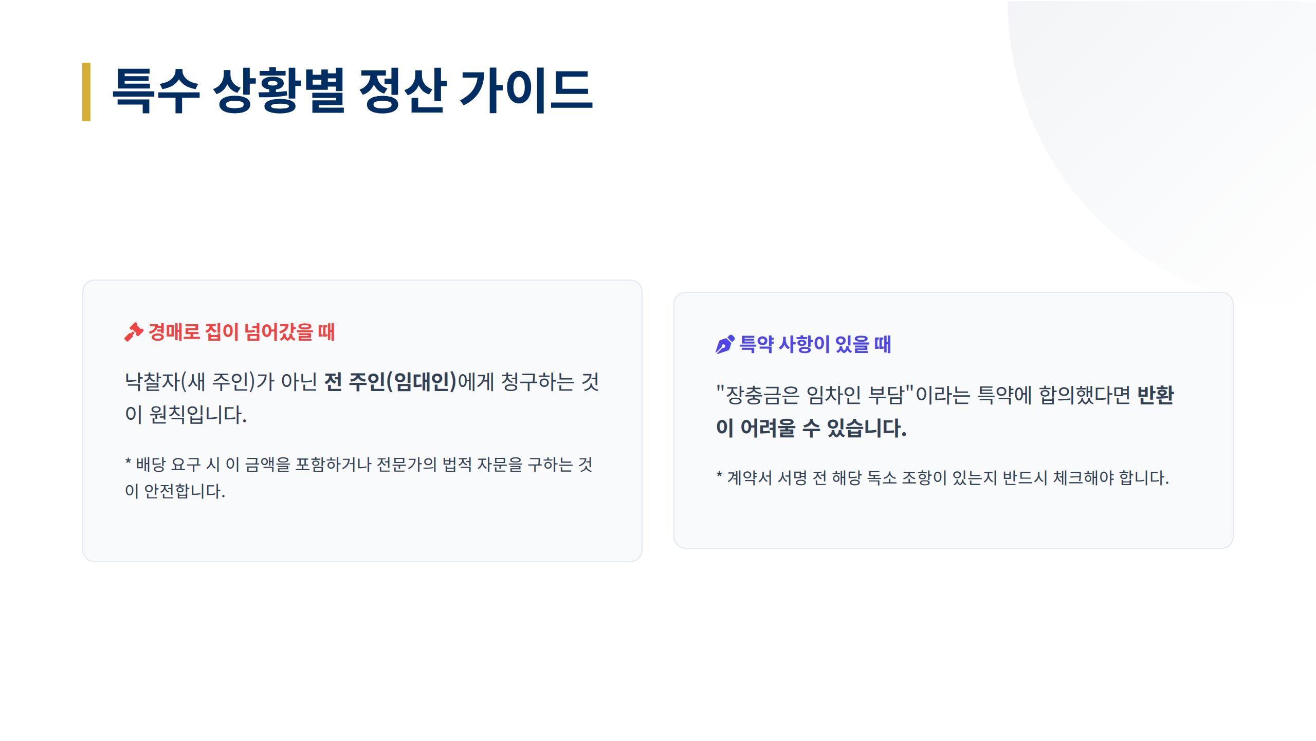 A2. 원칙적으로는 소유자 부담이지만, 사적 자치의 원칙상 해당 특약에 합의하고 서명했다면 환급이 어려울 수 있습니다. 계약 시 이 문구가 있는지 반드시 확인해야 합니다.