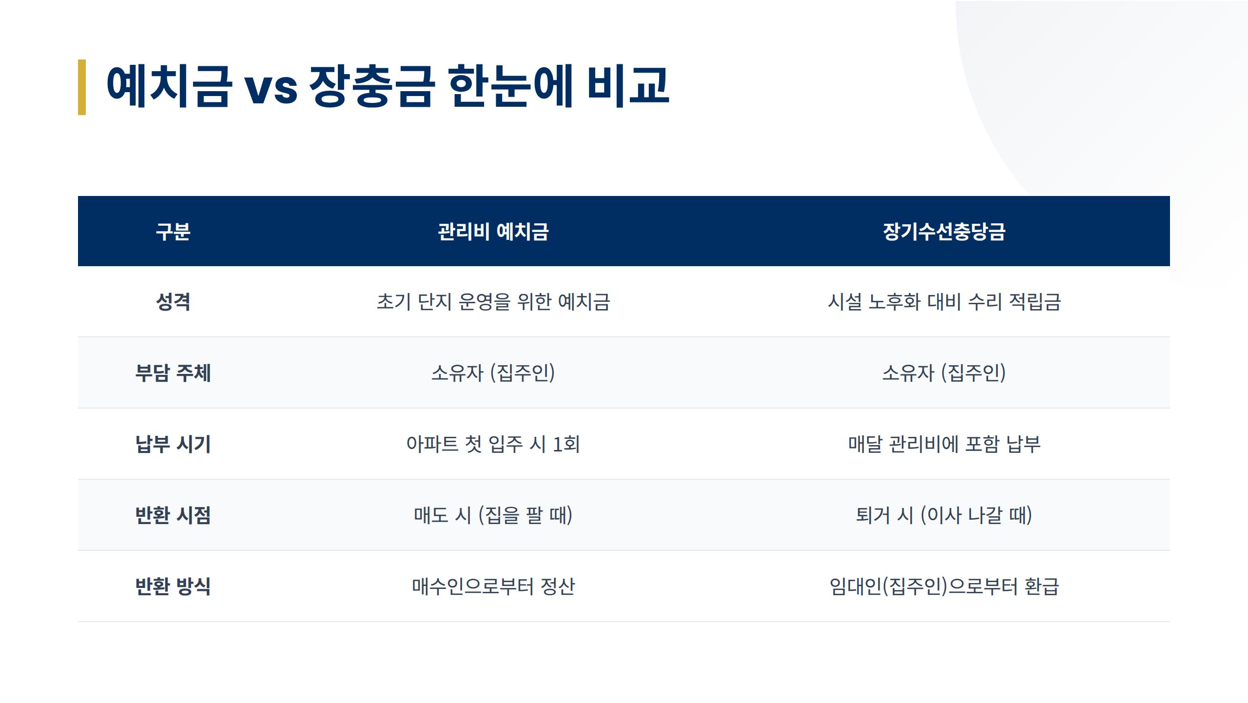 3. 관리비 예치금 vs 장기수선충당금 한눈에 비교