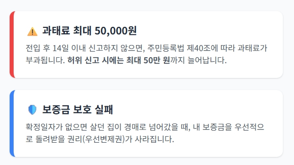 이사를 마치고 박스를 풀다 보면 깜빡하기 쉬운 것이 있습니다. 바로 전입신고와 확정일자입니다. 많은 분들이 "나중에 하지 뭐"라고 생각하다가 14일 기한을 넘기거나, 확정일자의 중요성을 몰라 나중에 보증금을 날리는 안타까운 사례가 매년 발생합니다.