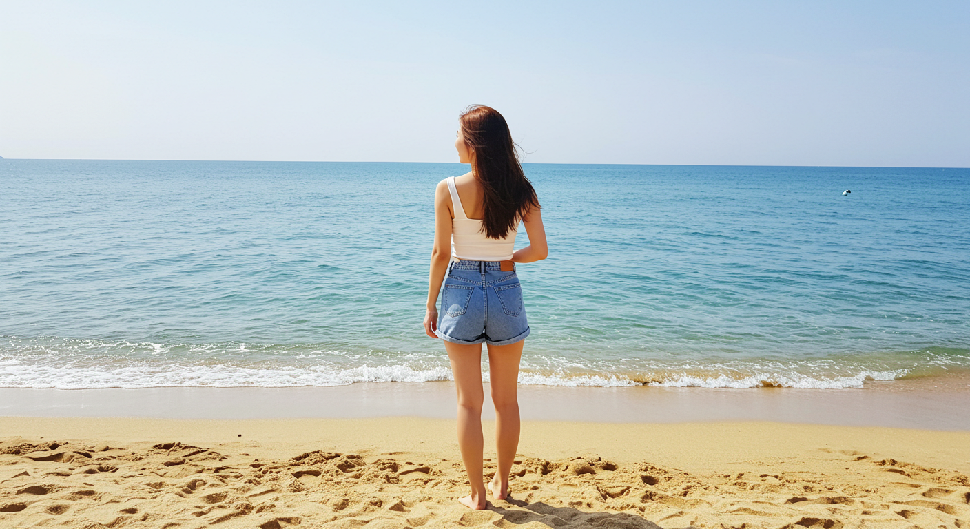 - 먼 곳 응시하기: 마치 풍경을 감상하는 듯 먼 곳을 바라보는 포즈는 당신의 옆모습과 실루엣을 강조하며 몽환적인 분위기를 연출합니다. 특히 해변이나 넓은 자연 풍경을 배경으로 할 때 더욱 빛을 발합니다. 여름휴가 감성 사진의 기본이죠!
