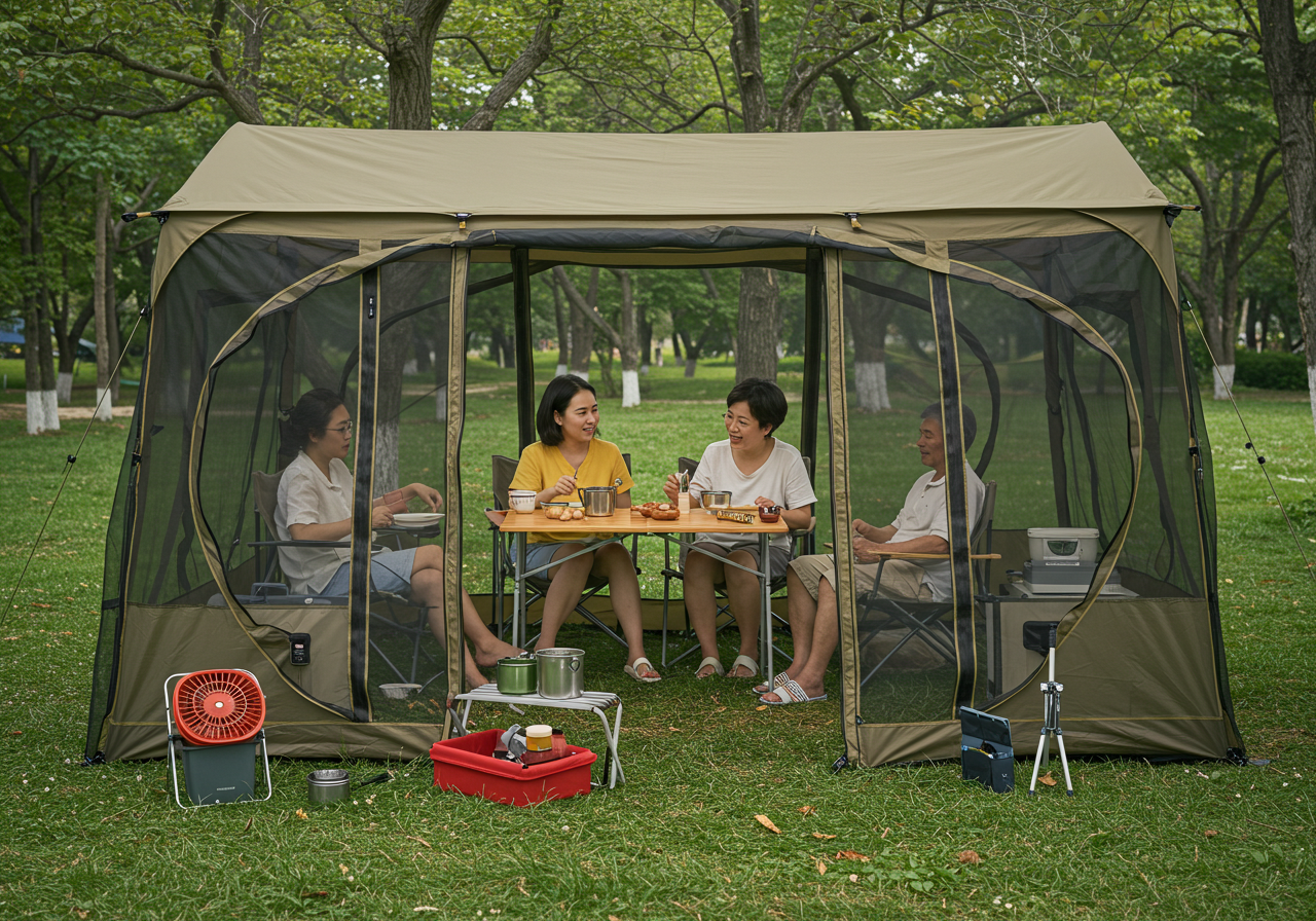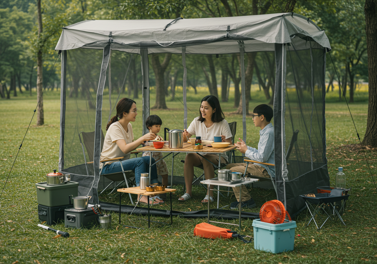- 모기장 텐트 또는 스크린 룸: 가족 단위 캠핑 시에는 모기장 텐트나 스크린 룸을 설치하여 식사나 휴식 공간을 벌레로부터 완전히 차단하는 것이 가장 효과적입니다.