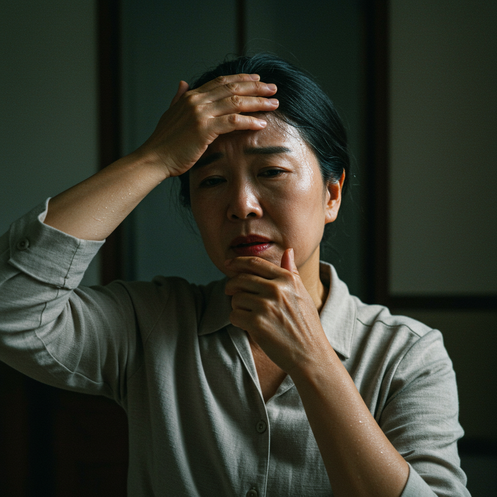 - 안면홍조 및 발한: 이유 없이 얼굴이나 목이 화끈거리고 땀이 나는 증상이 자주 있나요?