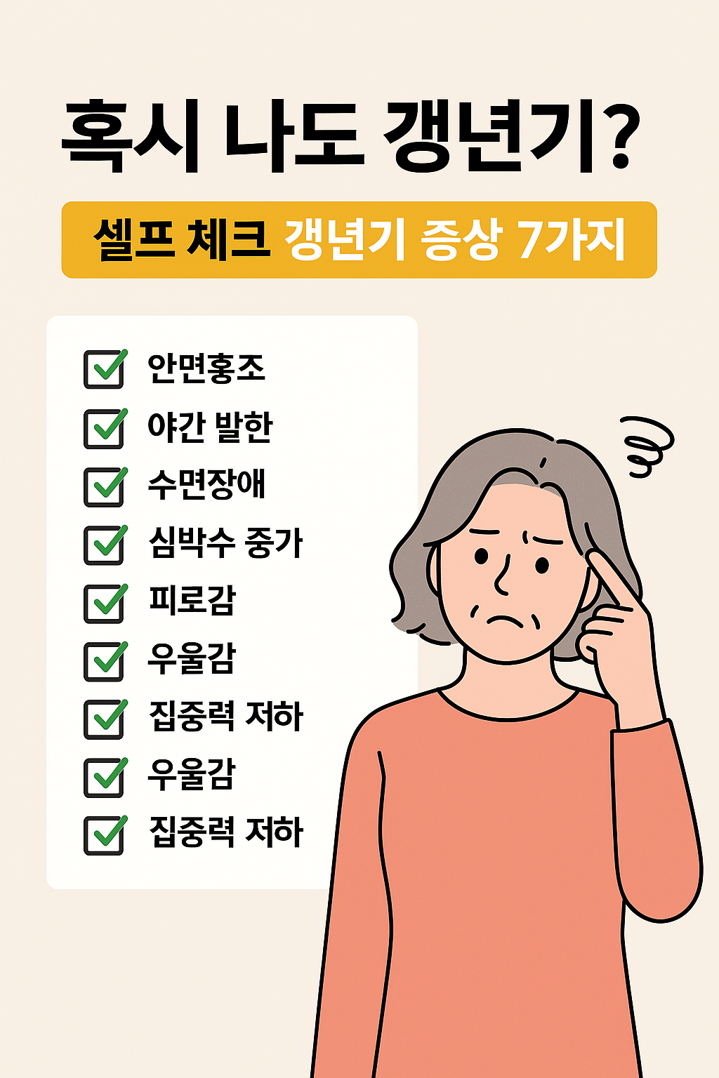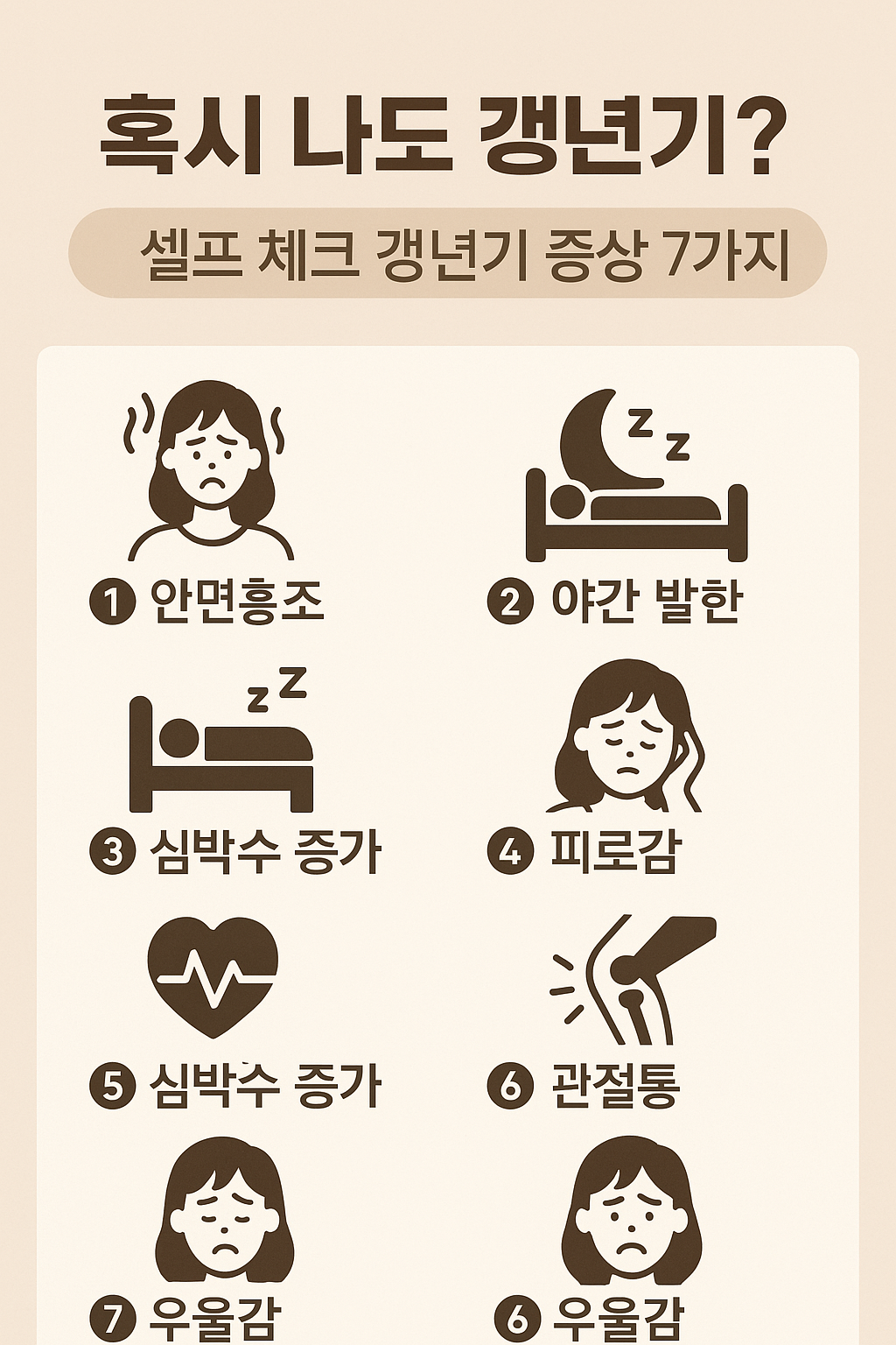 혹시 나도 갱년기? 셀프 체크 증상 7가지 + 관리법 완전 정리