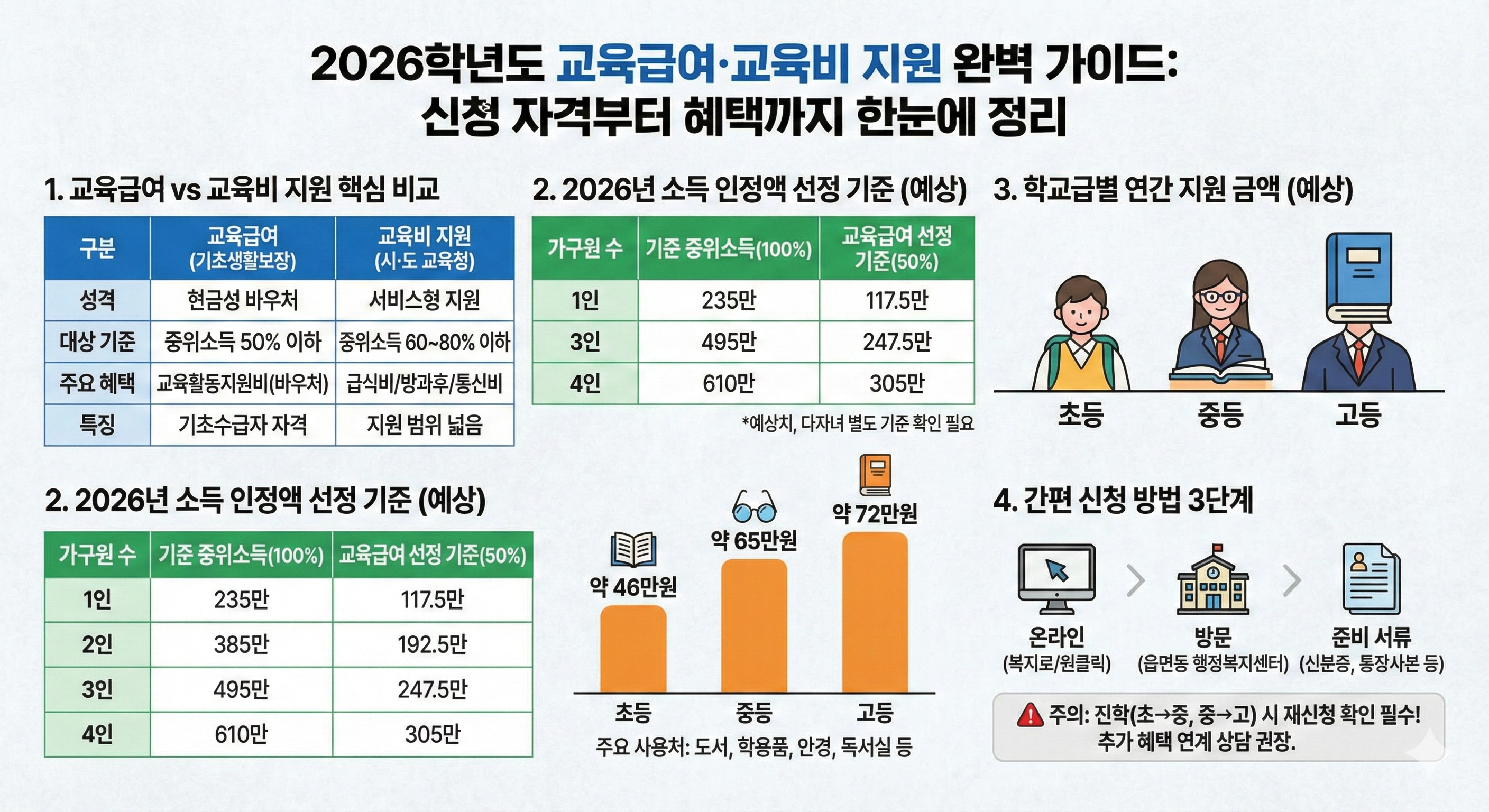 2026학년도 교육급여 및 교육비 지원 신청 자격과 방법: 우리 아이를 위한 최신 정책 완벽 가이드